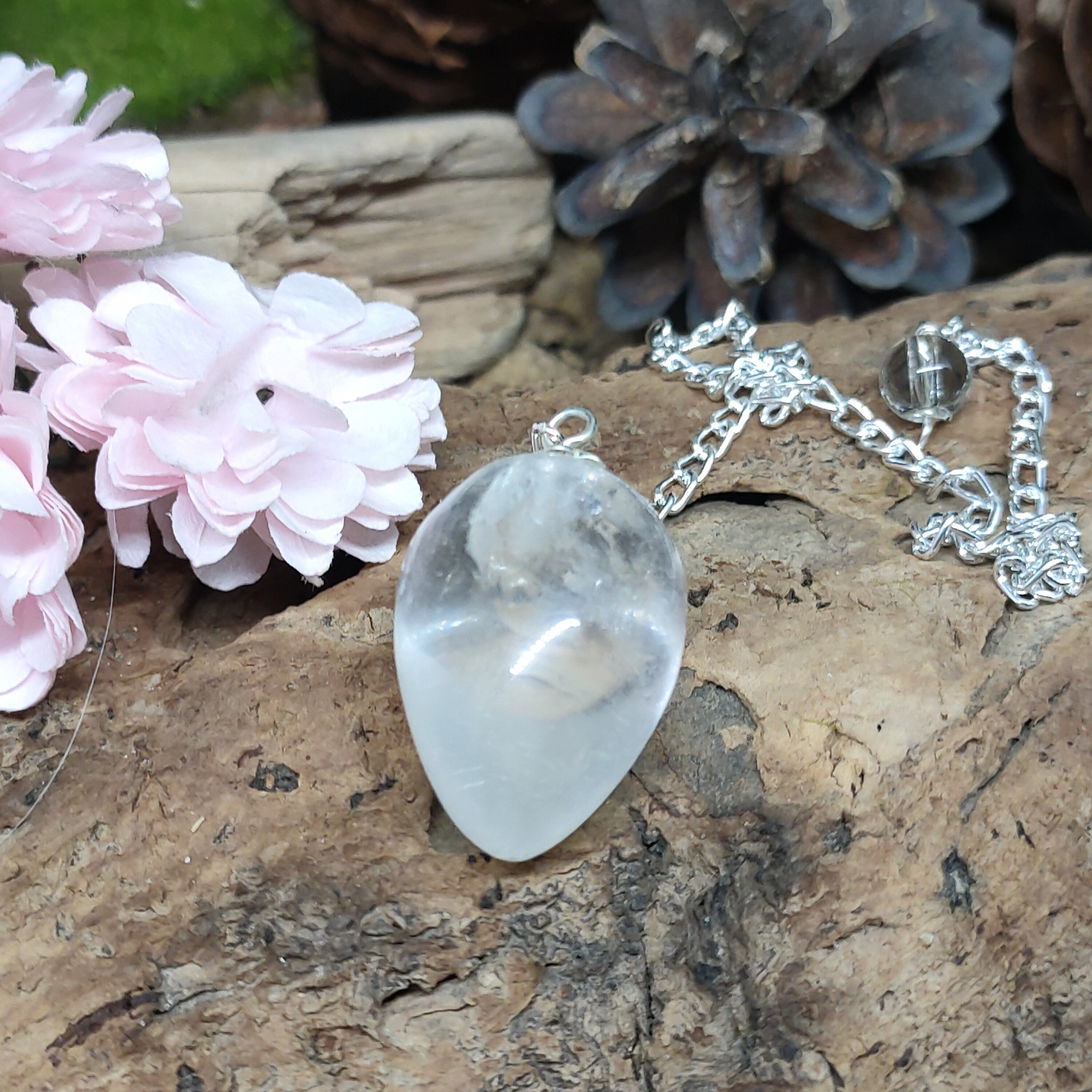 Pendule en forme de goutte en cristal de roche